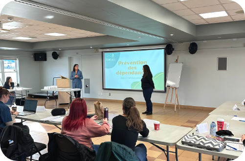 Nous offrons des services aux membres de la communauté (parents, OBNL, entreprises, professionnels) afin de les outiller pour mieux comprendre les enjeux, repérer les signes de vulnérabilité, renforcer les facteurs de protection et intervenir efficacement en prévention des dépendances auprès des jeunes.